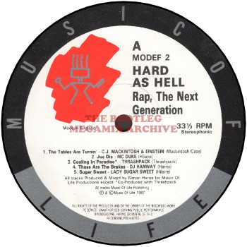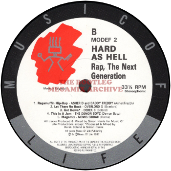 Asher D featuring Daddy Freddy - Ragamuffin Hip-Hop (1987); Overlord X - Let There Be Rock (1987); Demon Boyz - This Is A Jam (1987); Thrashpack - Cooling In Paradise (1987); Lady Sugar Sweet - Sugar Sweet (1987); C.J. Mackintosh & Einstein - The Tables Are Turnin' (1987); M.C. Duke - Jus-Dis (1987); Derek B - Get Down (1987)