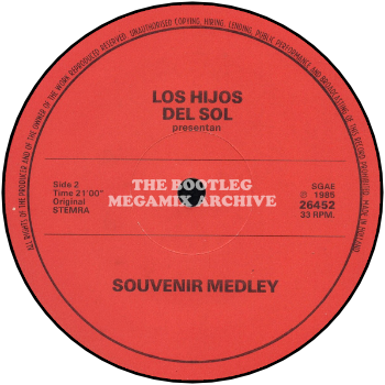 Similarly be aware of a decidedly dodgy label-less Dutch 12in LOS HIJOS DEL SOL presentan ‘Ibiza Mix Numero 2‘/’Souvenir Medley‘, two marathon megamixes one starting with ‘Axel F’/’Fresh’ and the other ‘Instant Replay’. Get the picture?