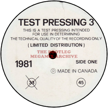 COMMENTS: Released in July 1981 based on the etching in the runout grooves