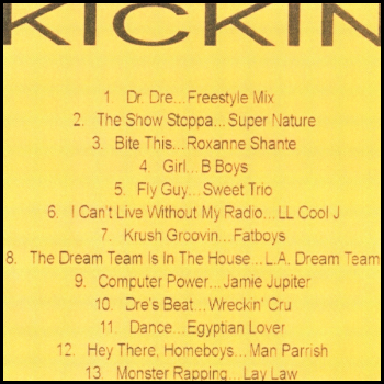 COMMENTS: From 1985 onwards Dre created a short megamix at the start of his tapes that contained a few of the tracks on the main mixes along with many others. The tapes were worth buying for these megamixes alone in my opinion.