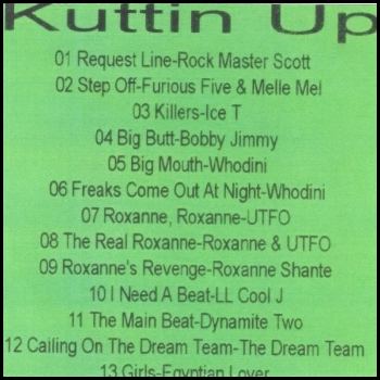 Rock Master Scott & The Dynamic Three - Request Line (1984); Whodini - Big Mouth (1984); Furious Five featuring Cowboy, Melle Mel & Scorpio - Step Off (1984); Ice-T - Killers (1984); Bobby Jimmy & The Critters - Big Butt (1984); Whodini - The Freaks Come Out At Night (1984)