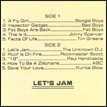 Boogie Boys - A Fly Girl (1985); Bad Boys featuring K Love - Bad Boys (1985); Fat Boys - The Fat Boys Are Back (1985); Jimmy Spicer - This Is It (1985); Tim Greene - The Facts Of Life (1985)