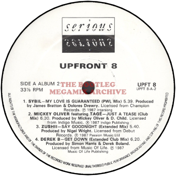 Duane & Co. - Hard Core (On The One) (1987); Cultural Vibe - Ma Foom Bey (1986); Mickey Oliver featuring Tage - Just A Tease (1987); M|A|R|R|S - Pump Up The Volume (1987); Pulse - Shut Up Already! (1987); Housemaster Boyz & The Rude Boy Of House - House Nation (1986); Criminal Element Orchestra - Put The Needle To The Record (1987); Blaze - If You Should Need A Friend (1987); Pleasure Pump - Fantasize Me (1987)
