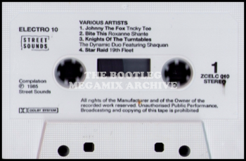 Tricky Tee - Johnny The Fox (1985); Roxanne Shante - Bite This (1985); Dynamic Duo featuring Shaquan - Knights Of The Turntables (1985); 19th Fleet - Star Raid (1985)