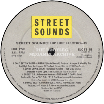 Just-Ice - Cold Gettin' Dumb (1986); Faze One - Layin' Down A Beat (1986); Move - Greedy Girls (1986); Captain Rock - Bongo Beat (1986)