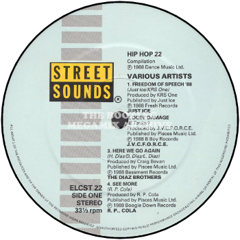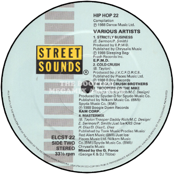 Raw Corp. featuring D.J. Len - Troopers On The Mike (1988); E.P.M.D. - Strictly Business (1988); Just-Ice - Freedom Of Speech '88 (1988); J.V.C. F.O.R.C.E. - Doin' Damage (1988); Diaz Brothers - Here We Go Again (1988); Kool Rock Brothers - See More (1988); Cold Crush Brothers - Cold Crush (1988)