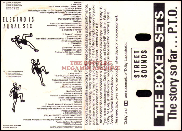 World Class Wreckin' Cru - World Class (1985); Mantronix - Needle To The Groove (1985); Fat Boys - The Fat Boys Are Back (1985); Rock Master Scott & The Dynamic Three - The Roof Is On Fire (1984)