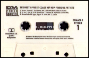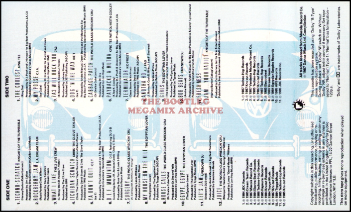 King Tee - The Coolest (1987); C.I.A. - My Posse (1987); 7A3 - 7A3 Will Rock You (1987); Ice-T - Dog'n The Wax (Ya Don't Quit-Part II) (1986); World Class Wreckin' Cru - Cabbage Patch (1987); King Tee with D.J. Keith Cooley - Paybacks A Mutha (1987); Kid Frost - Terminator (1985); J.J. Fad - Anotha Ho (1987); Egyptian Lover - Girls (1984); Unknown D.J. - 808 Beats (Eight Hundred And Eight Beats) (1984); Knights Of The Turntables - Fresh Mess (Jam...Your Radio) (1985)