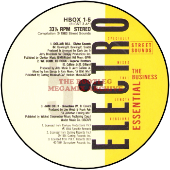 Divine Sounds - What People Do For Money (1984); Imperial Brothers - We Come To Rock (1984); Newcleus - Jam On It (1984)