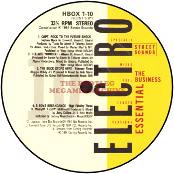 Captain Rock - Capt. Rock To The Future Shock (1984); Aleem featuring Leroy Burgess - Release Yourself (1984); Fantasy Three - The Buck Stops Here (1984); High Fidelity Three - B-Boys Breakdance (1984)