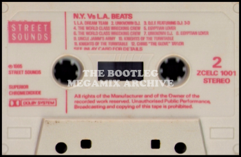 L.A. Dream Team - Rock Berry Jam (1985); Unknown D.J. - 808 Beats (Eight Hundred And Eight Beats) (1984); D.E.F. featuring D.J. Three D - D.E.F. Momentum (1985); World Class Wreckin' Cru - Surgery (1984); Egyptian Lover - Egypt, Egypt (1984); World Class Wreckin' Cru - Juice (1984); Unknown D.J. - Let's Jam (1985); Egyptian Lover - Girls (1984); Uncle Jamm's Army featuring Mr. Prince & Miss Nysa - Naughty Boy (1985); Knights Of The Turntables - Techno Scratch (1984); Knights Of The Turntables - We Are The Knights (1985); Chris 'The Glove' Taylor, Dave Storrs, Karlos Z. & Victor Flores - Itchiban Scratch (1985)