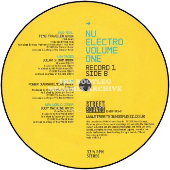 COMMENTS: Labels A, B and D are all mis-printed and show Nu Electro Volume One