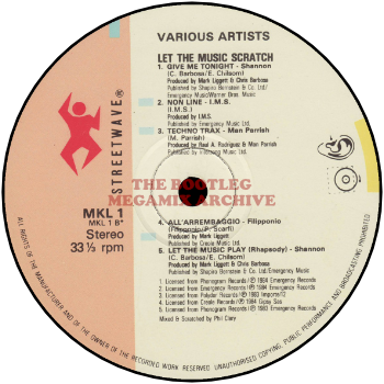 Shannon - Give Me Tonight (1984); I.M.S. - Nonline (1983); Man Parrish - Techno Trax (1982); Filipponio - All'Arrembaggio (1984); Shannon - Let The Music Play (1983)