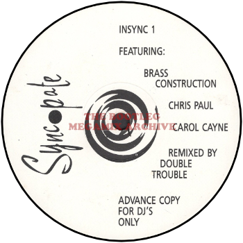 Double Trouble (his mum knows him as Leigh Guest) has created a megamix for Syncopate, the 0-118-117½-117-117½-0bpm INSYNC 1, combining Brass Construction ‘Movin’’, Chris Paul ‘Turn The Music Up’ and Carol Cayne ‘What My Love Can Bring’