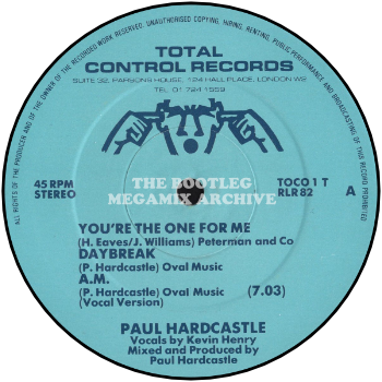 PAUL HARDCASTLE: ‘You’re The One For Me/Daybreak/AM’ (Total Control Records TOCO 1, via 01-724 1559)