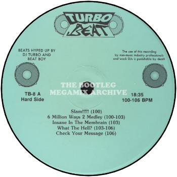 James Brown - Funky Drummer (1970); Onyx - Slam (1993); Real Roxanne with Hitman Howie Tee - Bang Zoom (Let's Go-Go) (1986); Kid 'N Play - Gittin' Funky (1988); Funkmaster Flex - Six Million Ways To Die (1993); Insane Poetry - How Ya Gonna Reason With A Psycho?!! (1992); Cypress Hill - Insane In The Brain (1993); What The Hell - Summer Stylee (1993); What The Hell - Young Girls (1993); Grandmaster Flash & The Furious Five featuring Melle Mel & Duke Bootee - The Message (1982); Ice Cube featuring Das EFX - Check Yo Self (1992)