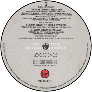 Nick Martinelli’s mix of Loose Ends now flips a neat Herbie Laidly-medleyed 101⅔…120½-0bpm ‘Mastermind Turntable Mix‘ of familiar Ends material (Virgin VS 884-13)
