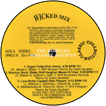 Shannon - Give Me Tonight (1984); Royalcash - Radio Activity (1983); L.A. Dream Team - Rock Berry Jam (1985); Rock Master Scott & The Dynamic Three - The Roof Is On Fire (1984); Newcleus - Jam On It (1984); Grandmaster & Melle Mel - White Lines (Don't Don't Do It) (1983); Patrice Rushen - Forget Me Nots (1982); Cherrelle with Alexander O'Neal - Saturday Love (1985); Nuance featuring Vikki Love - Take A Chance (1984); Rodney-O & Joe Cooley - Cooley High (1988); M.C. Shy-D - I've Gotta Be Tough (1986); Shannon - Let The Music Play (1983); Skyy - Call Me (1981); Gap Band - Burn Rubber On Me (Why You Wanna Hurt Me) (1980); S.O.S. Band - Take Your Time (Do It Right) (1980); Rick James - Give It To Me Baby (1981); Invisible Man's Band - All Night Thing (1979); Ta Mara & The Seen - Everybody Dance (1985); Funkadelic - One Nation Under A Groove (1978)